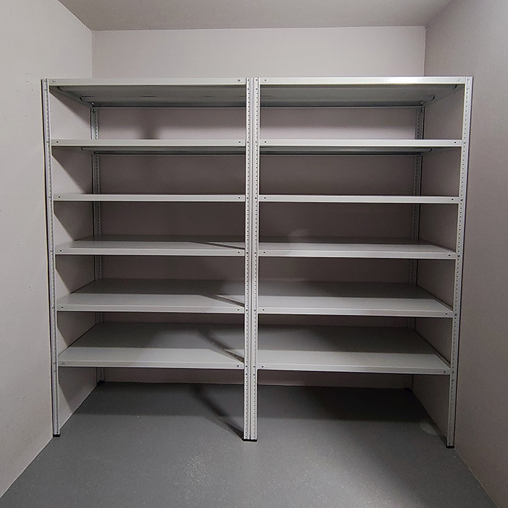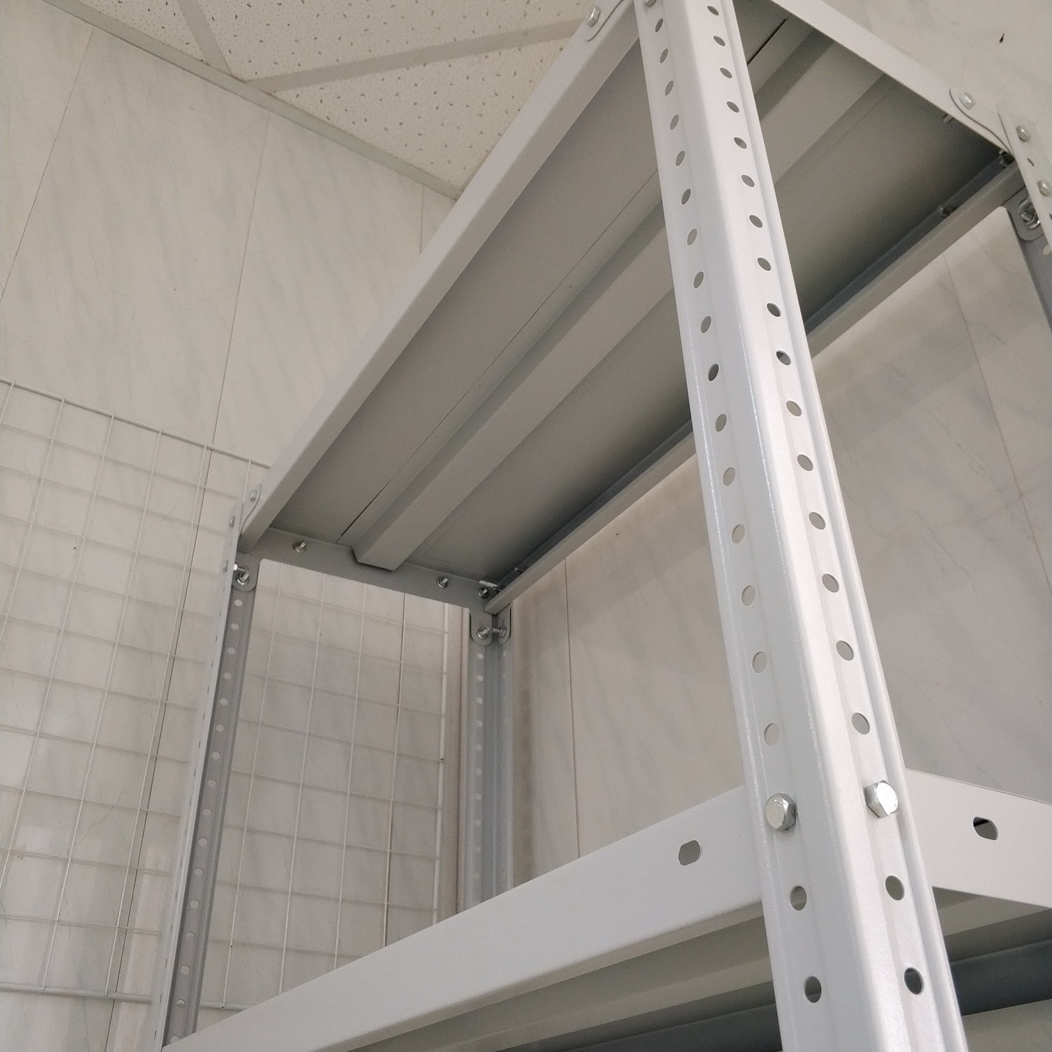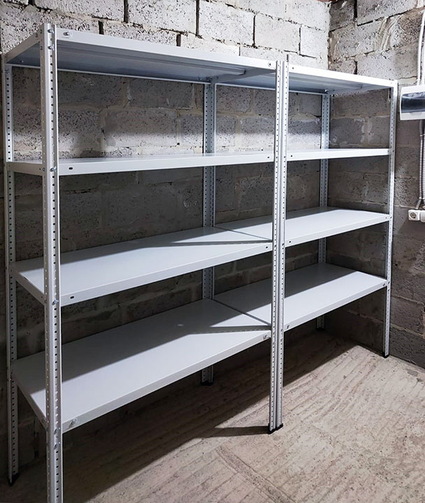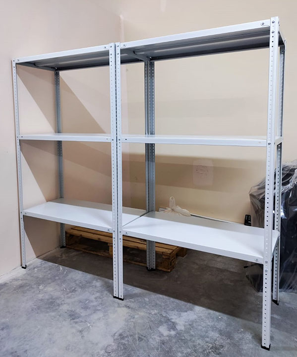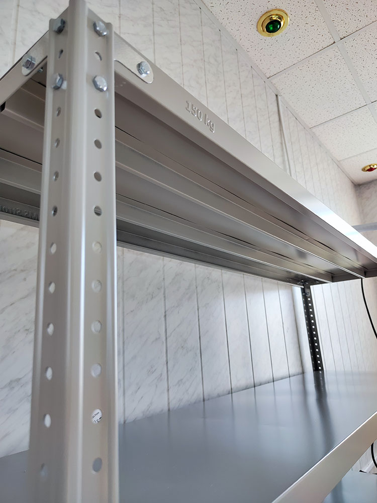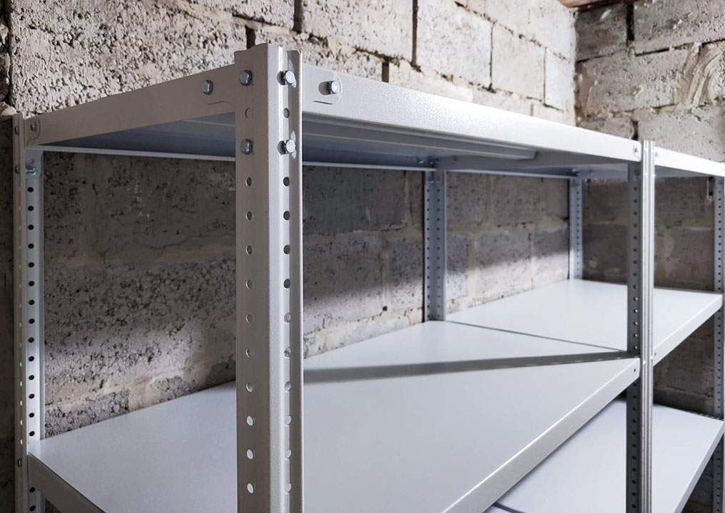 При общей нагрузке свыше 750 кг на секцию обязательна установка уголков на все полки для защиты стеллажа от бокового смещения.